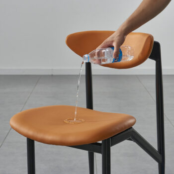 Phần tựa lưng và đệm ngồi được bọc da PU – một loại da nhân tạo chất lượng cao, nổi bật với bề mặt mịn màng, khả năng chống thấm nước và dễ dàng vệ sinh. Da PU không chỉ mang lại cảm giác êm ái khi sử dụng mà còn tạo nên vẻ ngoài sang trọng, phù hợp với nhiều phong cách nội thất khác nhau.
