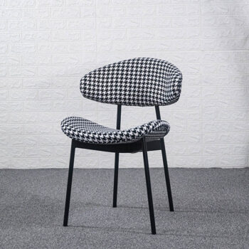 Ghế ăn Houndstooth LXY7812 sử dụng chất liệu vải nhung cao cấp với hoa văn Houndstooth độc đáo, tạo nên vẻ đẹp sang trọng và tinh tế. Vải nhung không chỉ mang lại cảm giác mềm mại, êm ái mà còn có độ bền cao, khả năng chống bám bụi và dễ dàng vệ sinh. Khung ghế được làm từ sắt nghệ thuật, chắc chắn và bền bỉ, đảm bảo sự ổn định và an toàn cho người sử dụng. Sự kết hợp giữa vải nhung và khung sắt tạo nên một sản phẩm vừa mang tính thẩm mỹ cao, vừa có độ bền vượt trội.