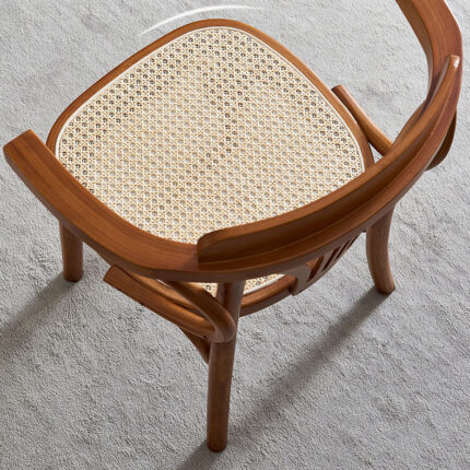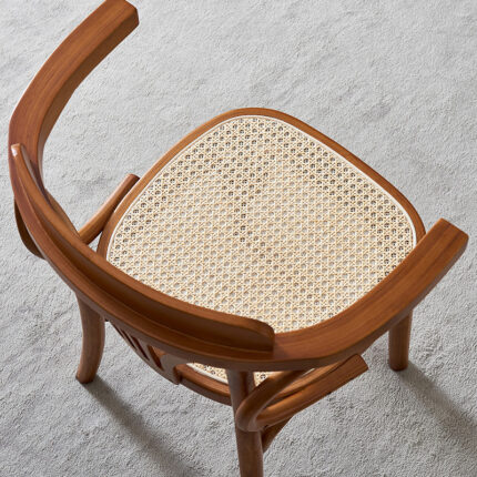 Ghế ăn khung gỗ cổ điển phối mây YIA76 mặt ngồi được dệt cây mây nhập khẩu từ Indonesia và được đan thủ công, mật độ giữa các lỗ cao không vượt quá 3mm, không lo sụt lún khi ngồi quá lâu, đảm bảo thoát khí hiệu quả, mang đến trải nghiệm thư giãn tuyệt vời.