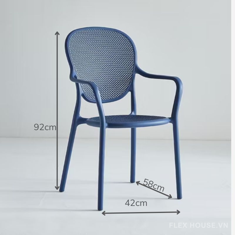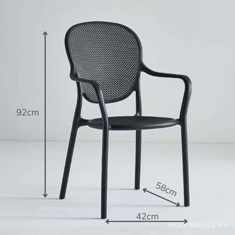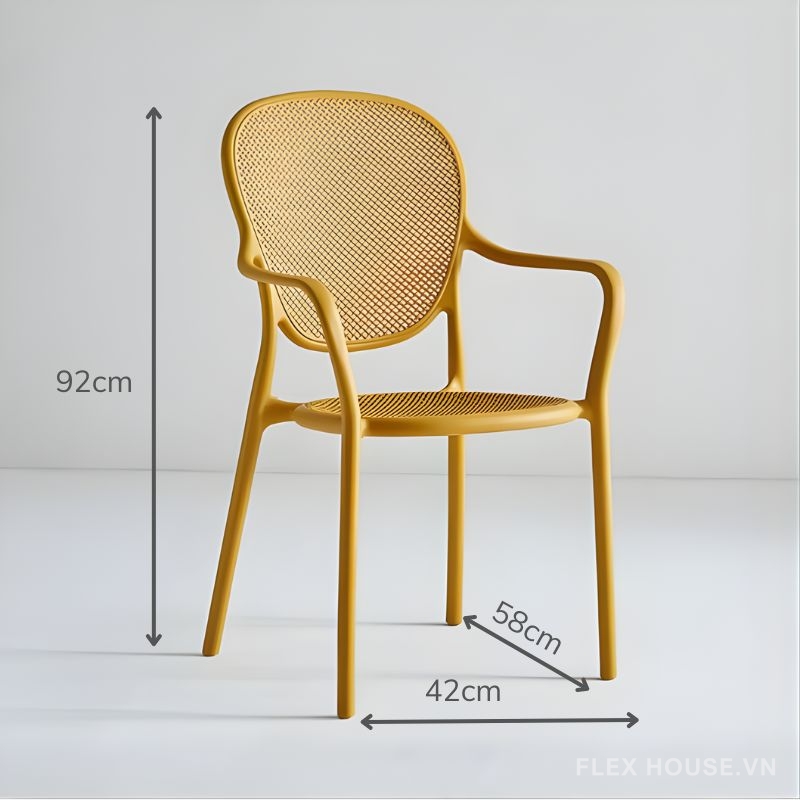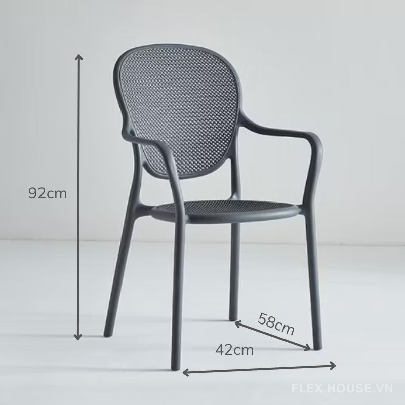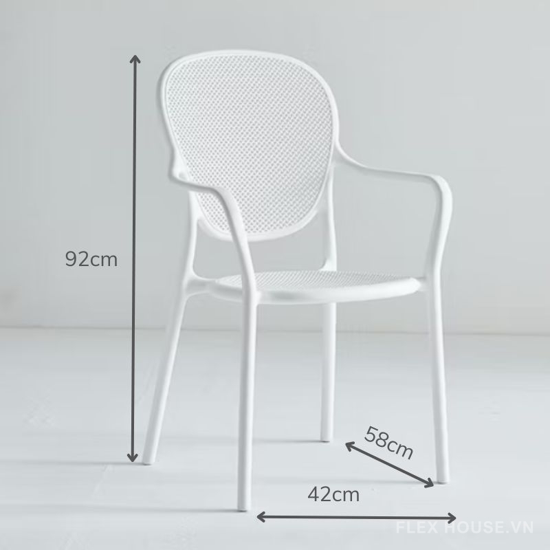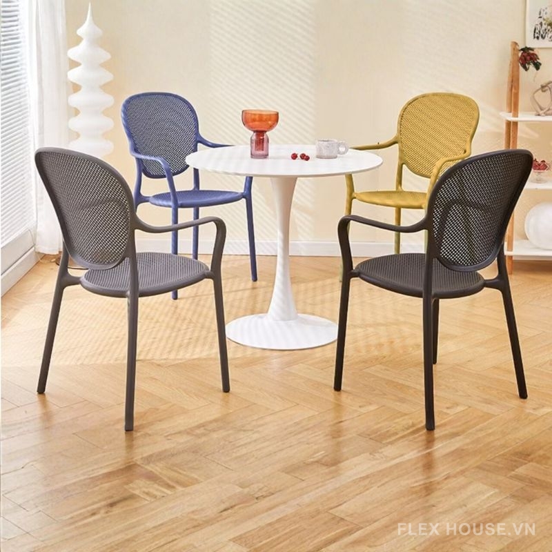 Nếu bạn đang tìm kiếm một chiếc ghế vừa đẹp mắt, vừa phù hợp với mọi không gian từ phòng ăn, quán cà phê đến khu vực sân vườn, thì ghế tựa lưng nhựa DM24138 chính là lựa chọn lý tưởng. Sản phẩm được làm từ nhựa PP nguyên sinh cao cấp, bề mặt đục lỗ tinh tế giúp thoáng khí và hạn chế bám bẩn. Kiểu dáng lưng cong bo tròn cùng tay vịn liền khối mang lại vẻ mềm mại, hiện đại và tinh gọn trong từng chi tiết.