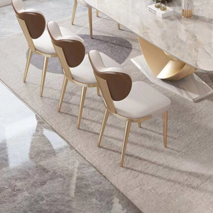 Ghế ăn tựa lưng trái tim hiện đại AL7285 sang trọng và độc đáo, ghế là lựa chọn của nhiều khách hàng cho không gian nội thất của mình. Ghế có tựa lưng hình trái tim độc đáo với phần khung lõi thép cao cấp được gia công và xử lý bề mặt dưới áp lực cao, chống ăn mòn và gỉ sét, khả năng chịu lực tốt đồng thời được sơn mạ vàng vô cùng sang trọng. Đệm ngồi và tựa lưng êm ái với lớp bọt biển đầy đặn và đàn hồi, được bao bọc bởi lớp da Microfiber công nghệ mới chống thấm và thoát khí hiệu quả.