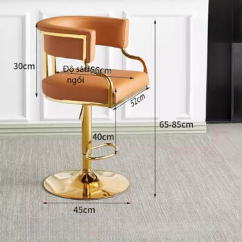 Hơn nữa, ghế bar được hỗ trợ khung mạ vàng đạt được kết cấu sang trọng, khung thép không gỉ mạ điện, chống gỉ và chống phai màu, chất liệu dày dặn, hỗ trợ chắc chắn. Xoay tự do 360 độ và nâng hạ 20cm linh hoạt.