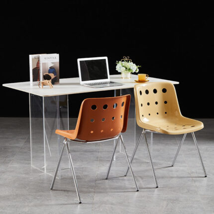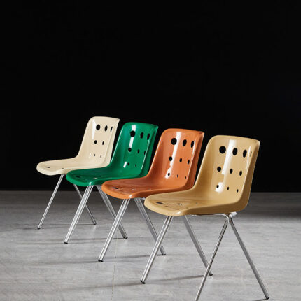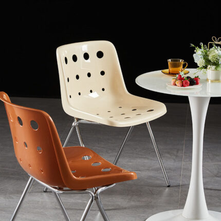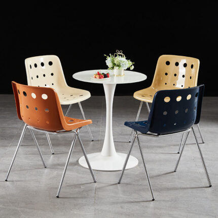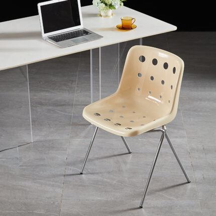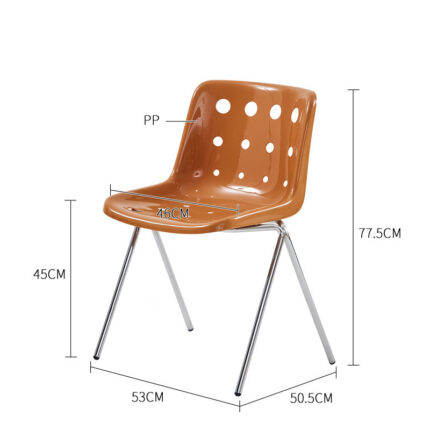 Ghế cà phê ngoài trời Cheese Chair CH889 có thiết kế tối giản và gần gũi, ghế có phần khung được làm từ nhựa PP có được phủ nano giúp bề mặt ghế luôn sáng bóng, hạn chế trầy xước và tăng độ bền cơ học cho khung. Khung có các họa tiết tròn đều nhau như khối phô mai thường thấy trong hoạt hình Tom & Jerry gần gũi và sáng tạo, đồng thời giúp thoát khí hiệu quả. Chân ghế thép cao cấp với các chi tiết đồng bộ giúp ghế ổn định, chịu lực tốt. Khả năng chịu lực lên đến 100kg.