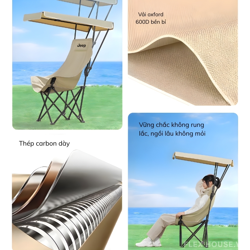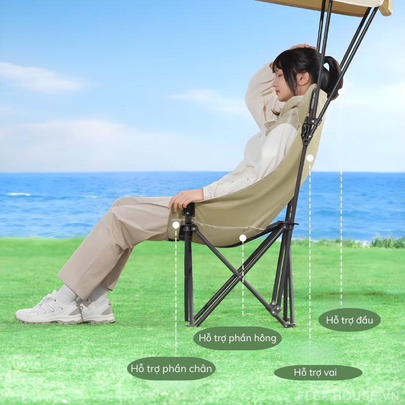 Đặt mua Ghế cắm trại gấp gọn kèm mái che tiện lợi JP3504