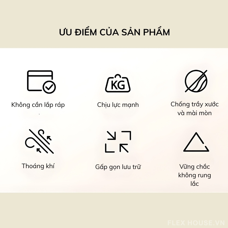 - Kết cấu vững chắc giúp chịu lực lên đến 120KG