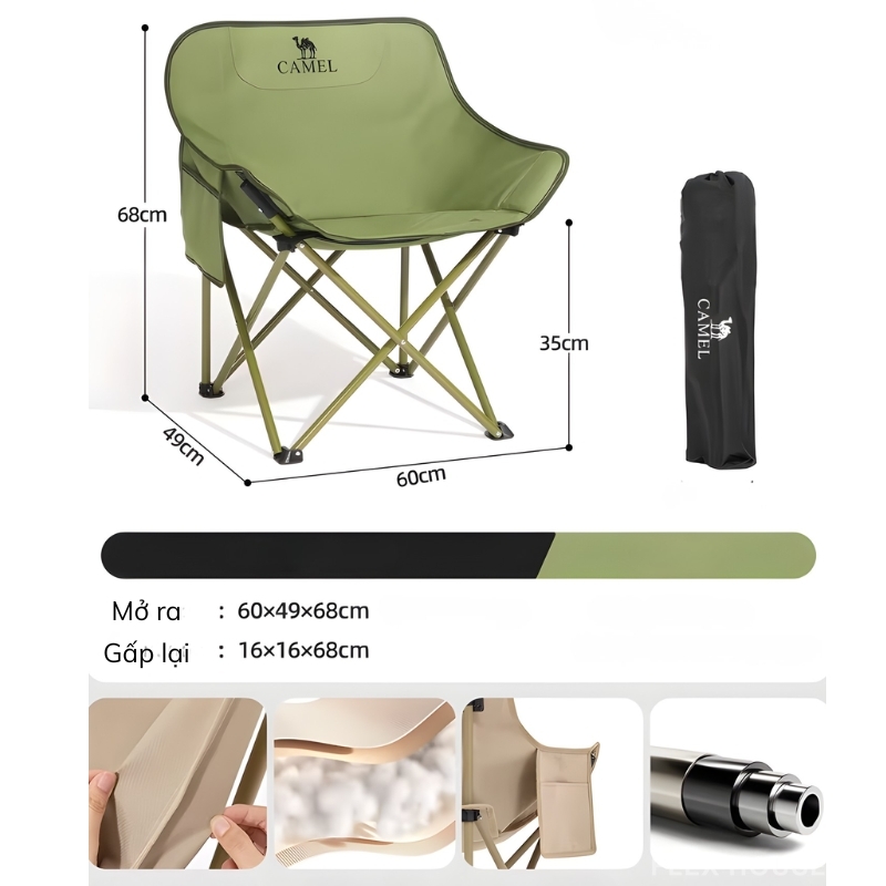 Ghế dã ngoại gấp gọn CM0037 được thiết kế tối ưu cho các chuyến đi ngoài trời với khung thép carbon 4 lớp siêu chắc chắn, đảm bảo độ ổn định và chịu tải vượt trội. Phần vải Oxford 600D dày dặn, bền bỉ, chống mài mòn tốt, kết hợp bề mặt ngồi được gia cố giúp tăng độ êm ái và thoải mái khi sử dụng. Thiết kế lòng ghế cong ôm trọn cơ thể mang lại cảm giác ngồi thư giãn tự nhiên. Đặc biệt, ghế có thể gấp gọn nhanh chóng, trọng lượng nhẹ chỉ khoảng 2kg, dễ dàng mang theo trong mọi hành trình dã ngoại, camping hay picnic.