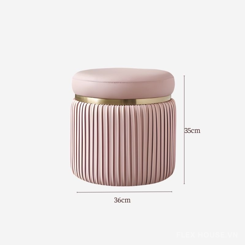 Ghế đôn MK8367 nổi bật với thiết kế tròn hiện đại, form thấp xinh xắn, bọc da mềm mịn, dễ vệ sinh, bề mặt ngồi êm ái. Thân ghế được xử lý xếp ly dọc tinh tế, tạo điểm nhấn thị giác sang trọng, nổi bật trong không gian. Bên trong là khung gỗ chắc chắn, chịu lực tốt, cho cảm giác ngồi vững và đầm. Phần chân đế tích hợp mút silicon được xử lý tinh tế, giúp ghế bám sàn tốt hơn, hạn chế xê dịch trong quá trình sử dụng.
