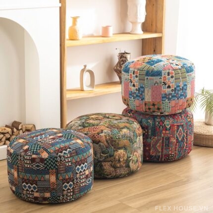 Giới thiệu Ghế đôn canvas họa tiết du mục retro DF9946