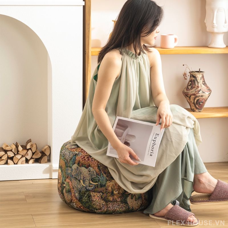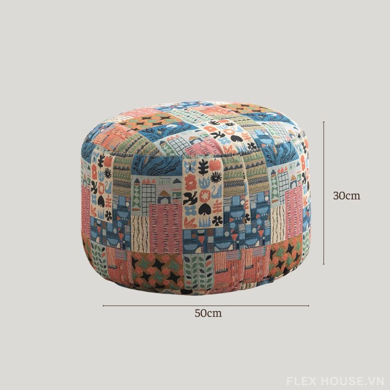 Giới thiệu Ghế đôn canvas họa tiết du mục retro DF9946