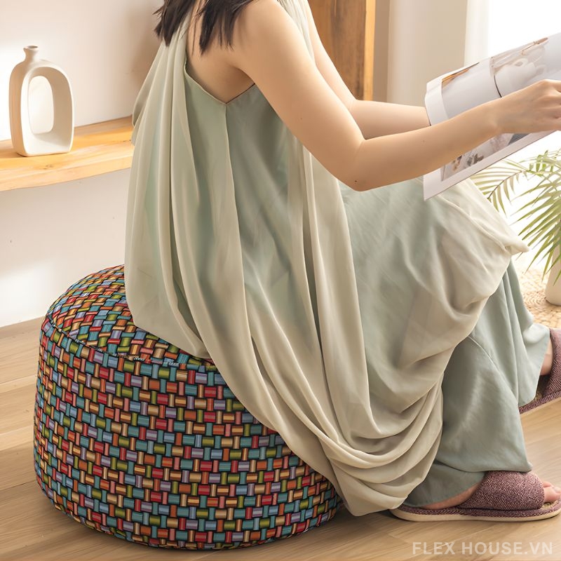 Ghế đôn DF9729 được bọc vải tổng hợp cotton kết hợp sợi polyester, mềm mại, thoáng và bền màu khi sử dụng lâu dài. Bên trong là hạt xốp EPP có độ đàn hồi tốt, giúp ghế nhẹ, dễ di chuyển và giữ form ổn định. Thiết kế cho phép tháo rời vỏ ghế tiện lợi cho việc vệ sinh, đồng thời phù hợp đặt ở nhiều vị trí như phòng khách, phòng ngủ, góc đọc sách hay ban công.