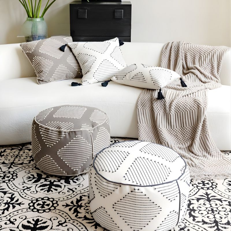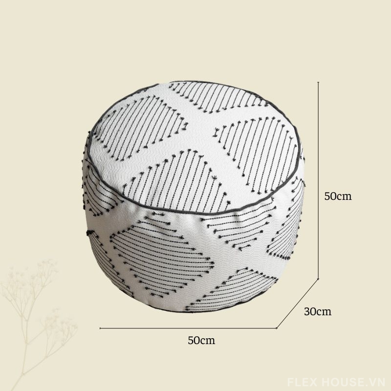 Ghế đôn HC3701 có thiết kế dáng tròn hiện đại, họa tiết dệt tinh tế, dễ phối với nhiều không gian từ phòng khách, phòng ngủ đến góc đọc sách. Phần vỏ ghế sử dụng vải tổng hợp cotton + lanh, bề mặt mềm mại, thoáng khí, thân thiện khi sử dụng hằng ngày. Bên trong là lõi xốp EPP cao cấp, nhẹ nhưng chắc, đàn hồi tốt, không dễ xẹp lún hay biến dạng. Thiết kế khóa kéo tháo rời, thuận tiện vệ sinh, giữ ghế luôn sạch sẽ và bền đẹp theo thời gian.