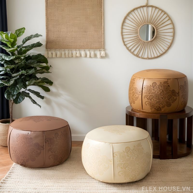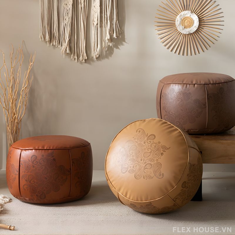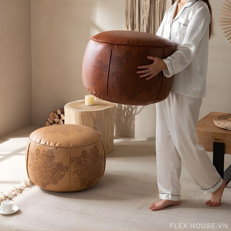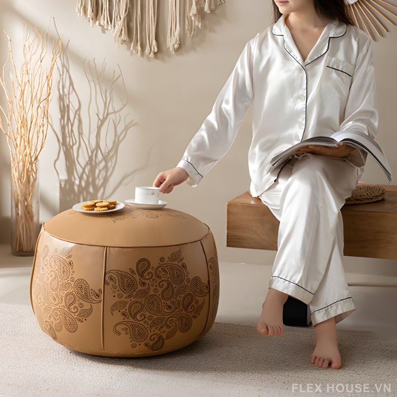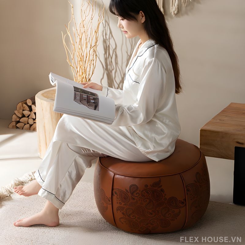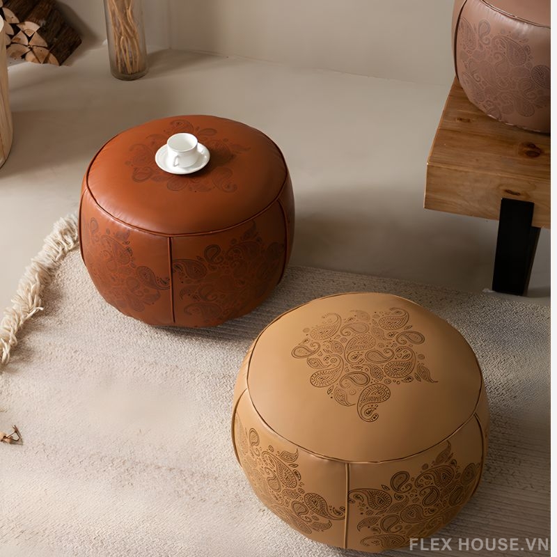 Đặt mua Ghế đôn sofa bọc da phong cách Tây Âu DO8549