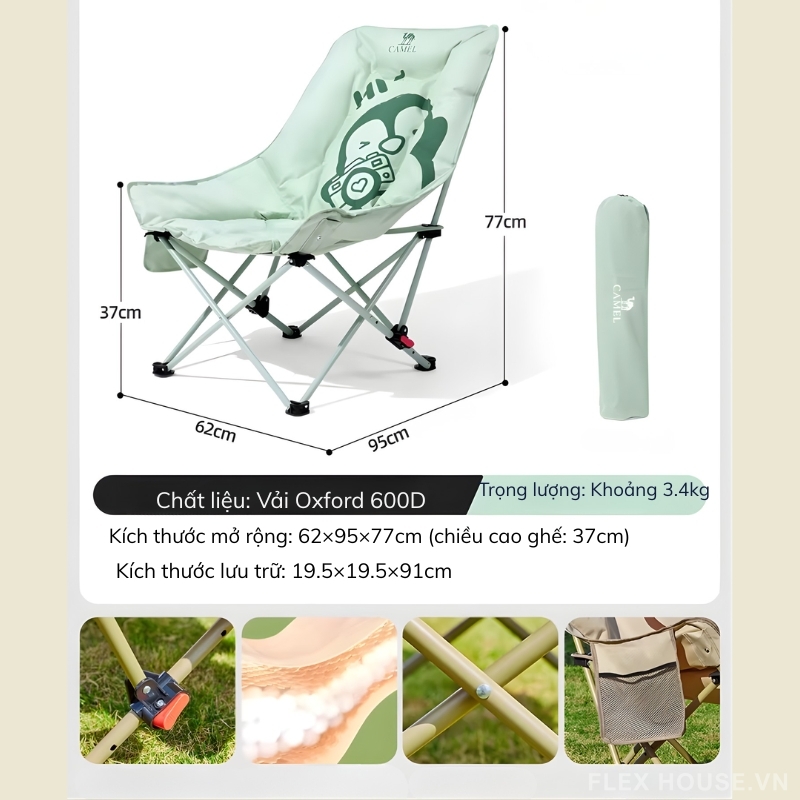 - Thích hợp đi câu cá, cắm trại, picnic, ghế nghỉ trưa văn phòng