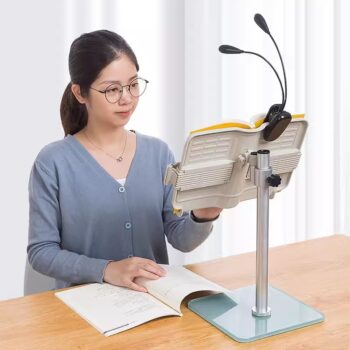 Giá đỡ đọc sách nâng hạ tích hợp đèn với thiết kế tối giản và linh hoạt, giá có trọng lượng gọn nhẹ, có thể dễ dàng mang đi bất cứ đâu, nó giúp lưng luôn thẳng, hạn chế các bệnh liên quan đến cột sống và đốt sống cổ. Giúp việc đọc trở nên dễ dàng hơn, phát triển thói quen đọc đúng trên sàn, bàn, giường,…