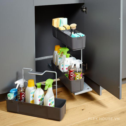 Giá đựng dụng cụ vệ sinh 545.48.411 là lựa chọn tinh tế và hiện đại cho không gian lưu trữ trong gia đình. Với cơ chế trượt mượt mà, chỉ cần một thao tác nhẹ nhàng, bạn có thể kéo toàn bộ kệ ra trước mặt, giúp việc lấy và sắp xếp các chai lọ, dụng cụ vệ sinh trở nên đơn giản và tiện lợi hơn bao giờ hết. Sau khi sử dụng, chỉ cần một cú đẩy nhẹ, giá đựng sẽ trở về vị trí cũ một cách êm ái, không gây tiếng ồn, giữ cho không gian luôn ngăn nắp.