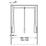 - Đường kính thanh treo quần áo: 22,4 mm