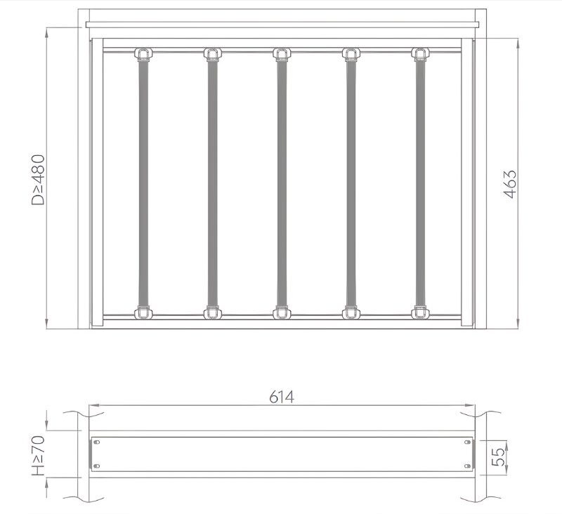 | 25861G | 614x513x55mm | ≥ 480mm | ≥614mm | ≥70mm |