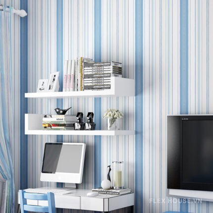Giới thiệu về Giấy dán tường phòng ngủ decor dạng sọc xanh RMT4496