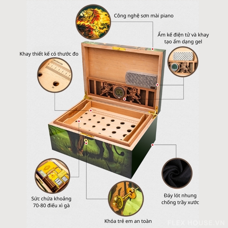 Đặc điểm của Hộp bảo quản cigar sư tử lửa cao cấp LBS5649