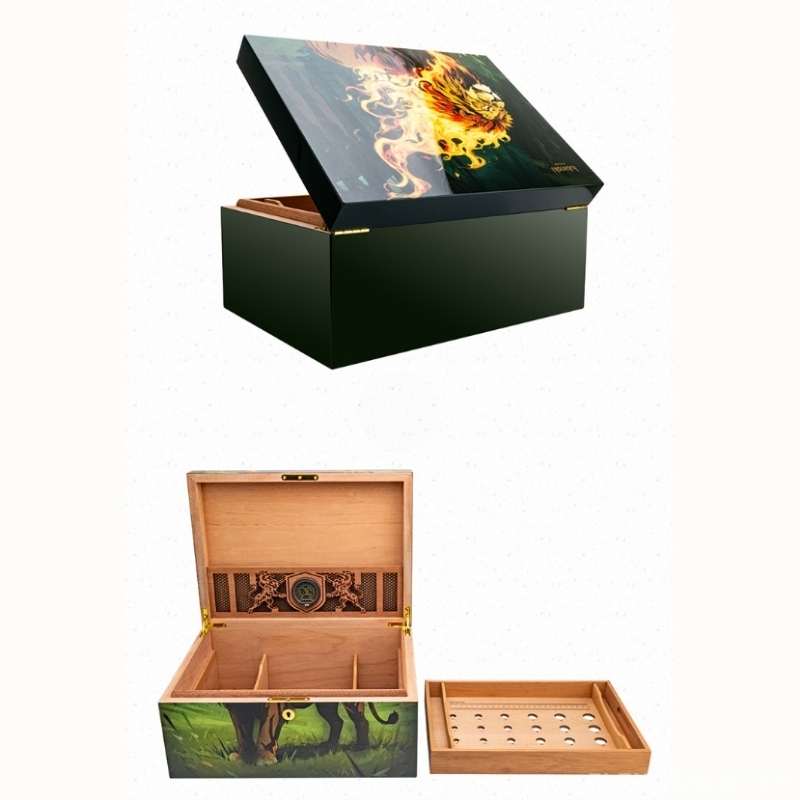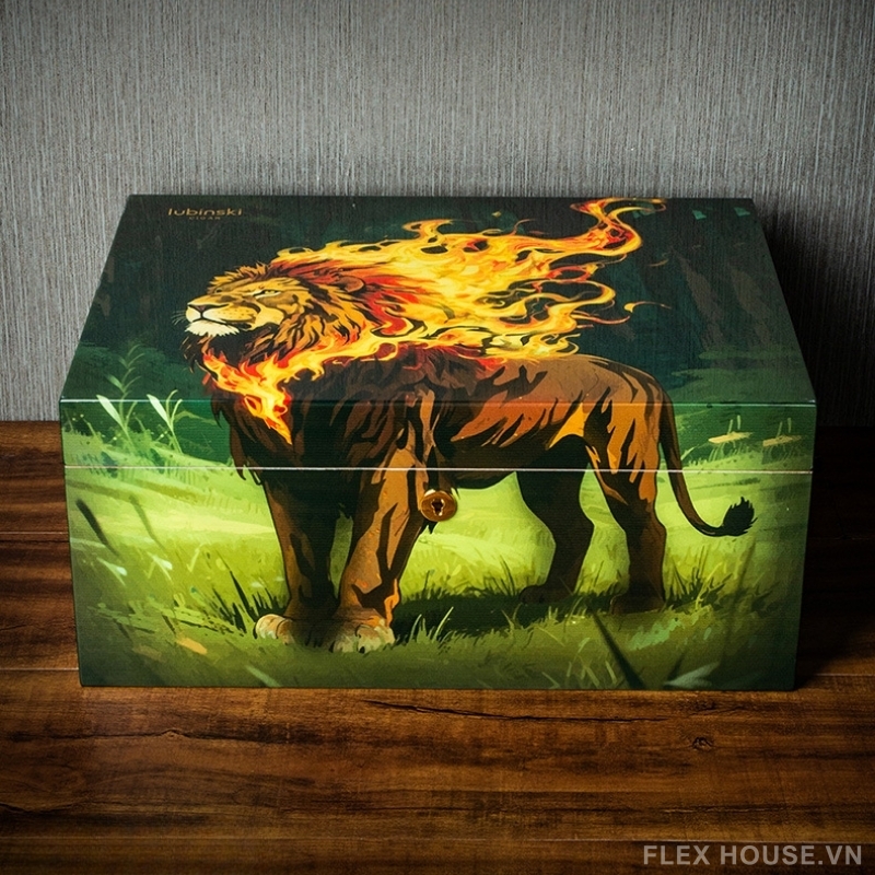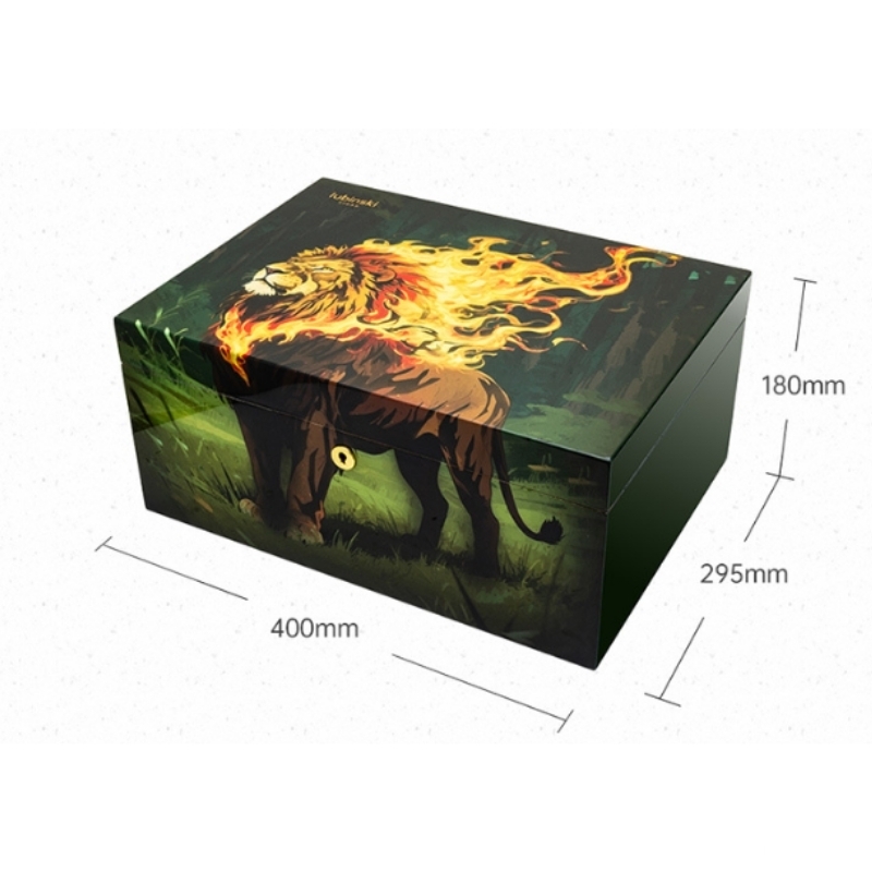 Hộp bảo quản cigar sư tử lửa cao cấp LBS5649 không chỉ là một chiếc hộp bảo quản cigar, mà là một tác phẩm nghệ thuật thủ công dành cho những người chơi xì gà thực thụ. Hình ảnh Sư Tử Lửa được thể hiện bằng công nghệ sơn mài cao cấp, tạo chiều sâu thị giác mạnh mẽ, màu sắc rực rỡ nhưng vẫn sang trọng và đầy khí chất quyền uy. Mỗi đường nét đều toát lên tinh thần bản lĩnh, đam mê và đẳng cấp.