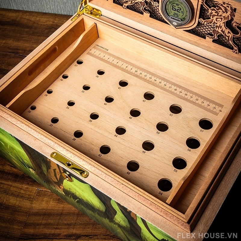- Dung tích lớn: Lưu trữ khoảng 70–80 điếu cigar, phù hợp cho người chơi lâu năm hoặc nhà sưu tầm