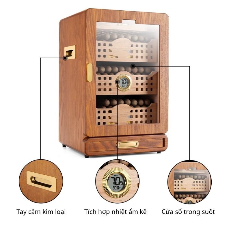 - Hệ thống giữ ẩm hiệu quả: duy trì độ ẩm ổn định cho cigar luôn ở trạng thái tốt nhất