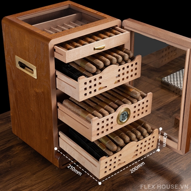 - Thiết kế 4 tầng dung lượng lớn: chứa khoảng 100–150 điếu, phù hợp nhu cầu lưu trữ lâu dài