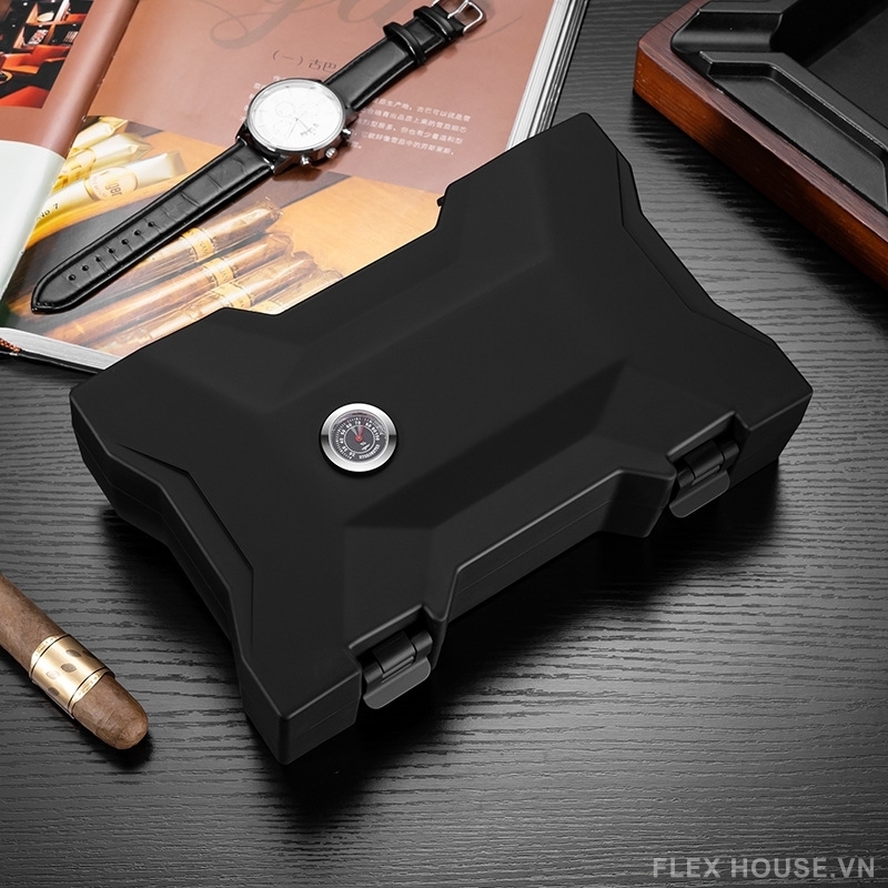 Hộp bảo quản sở hữu thiết kế hai tầng tiện dụng, cho phép sắp xếp xì gà gọn gàng và khoa học. Hộp còn được trang bị ẩm kế bên ngoài giúp người dùng dễ dàng theo dõi độ ẩm bên trong, đảm bảo cigar luôn được bảo quản trong môi trường lý tưởng.