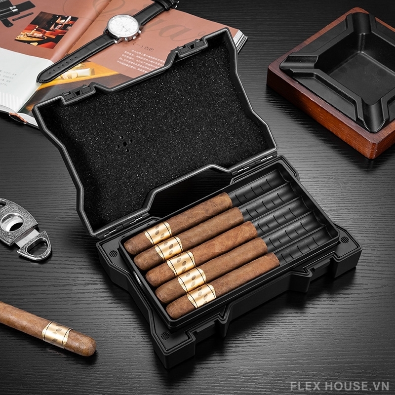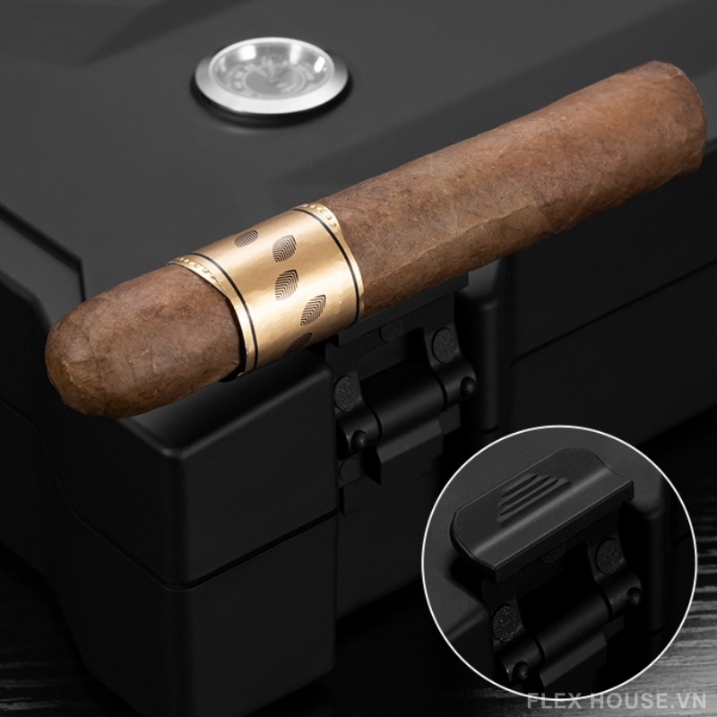 - Phần khóa hộp được thiết kế có thể dùng như gác cigar khi cần, mang lại sự tiện lợi khi thưởng thức