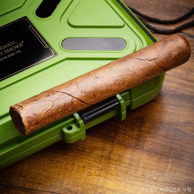 Hộp đựng cigar sử dụng chất liệu nhựa ABS cao cấp, hộp có khả năng chống va đập, chống nước và chống ẩm hiệu quả. Bên trong được trang bị lớp mút đàn hồi mật độ cao, giúp cố định cigar chắc chắn, hạn chế rung lắc và trầy xước, đảm bảo cigar luôn ở trạng thái tốt nhất dù di chuyển trong điều kiện nào.