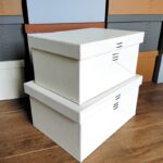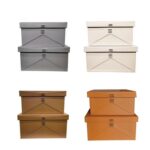 Hộp đựng đồ bằng da kiểu cách tối giản KK5706 được thiết kế đơn giản với 4 màu: cam, xám, nâu, trắng sang trọng bởi lớp da trơn phủ trên khung gỗ MDF. Các đường chỉ may đều và đẹp mắt, 2 bên hộp thêm chi tiết các đường may lớn và các đường chéo tạo cảm giác nếp gấp, là điểm nhấn và độc lạ hơn. Hộp có phần nắp rời tiện lợi cho việc cất giữ đồ vật, áo quần, cà vạt,…