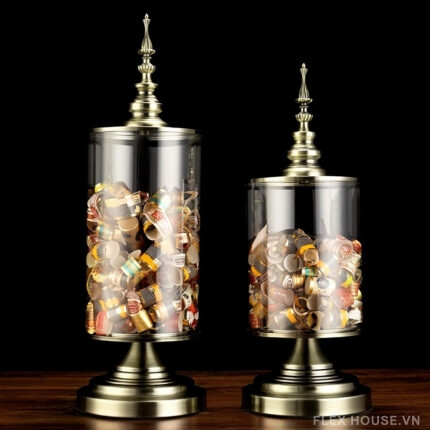 - Phong cách Châu Âu cổ điển: Thiết kế trụ kính cao kết hợp nắp và chân đế hợp kim mạ ánh vàng, tạo điểm nhấn sang trọng cho không gian