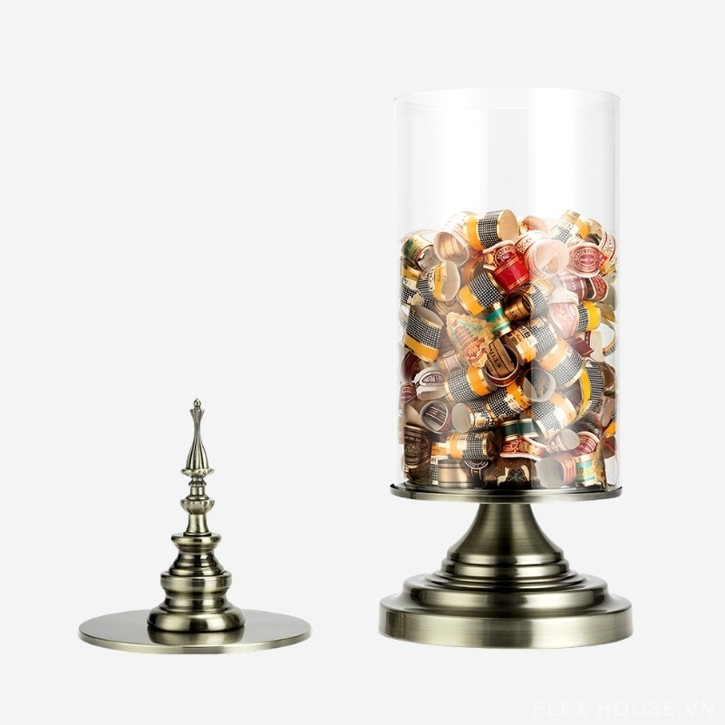 Hũ thủy tinh đựng nhãn xì gà kiểu Châu Âu CGL2663 là phụ kiện trang trí độc đáo dành cho những người yêu cigar và trân trọng từng kỷ niệm sau mỗi điếu xì gà. Thiết kế lấy cảm hứng từ phong cách cổ điển châu Âu với thân trụ kính trong suốt kết hợp chân đế hợp kim ánh vàng sang trọng, tạo nên tổng thể thanh lịch và đầy nghệ thuật.