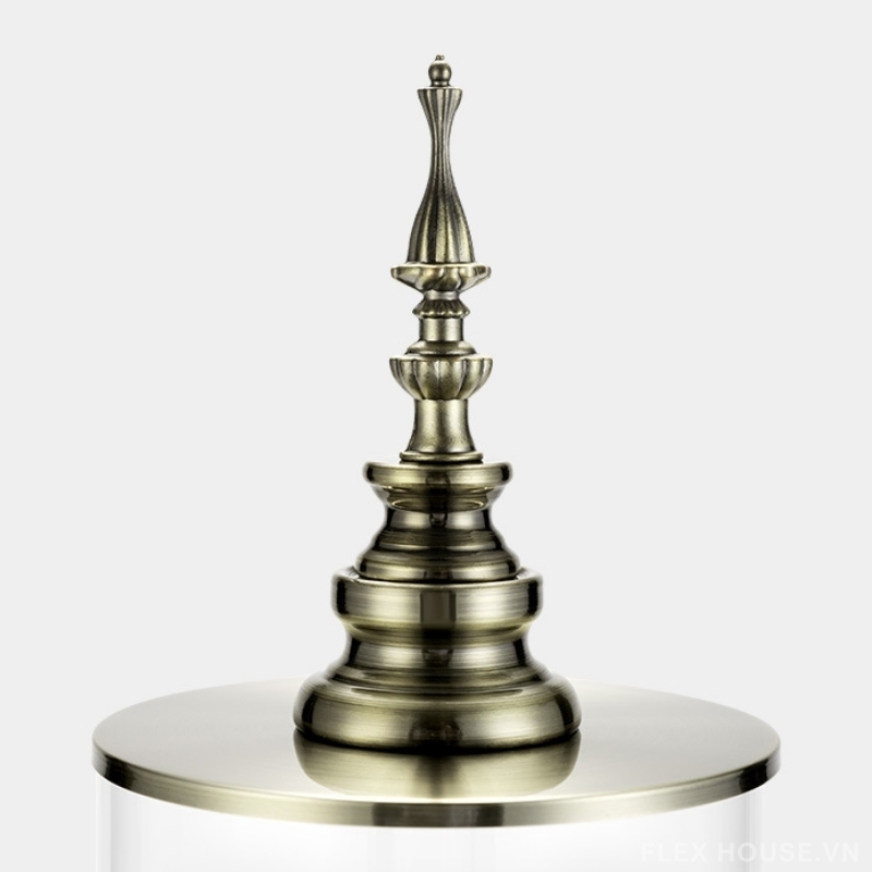 - Phong cách Châu Âu cổ điển: Thiết kế trụ kính cao kết hợp nắp và chân đế hợp kim mạ ánh vàng, tạo điểm nhấn sang trọng cho không gian