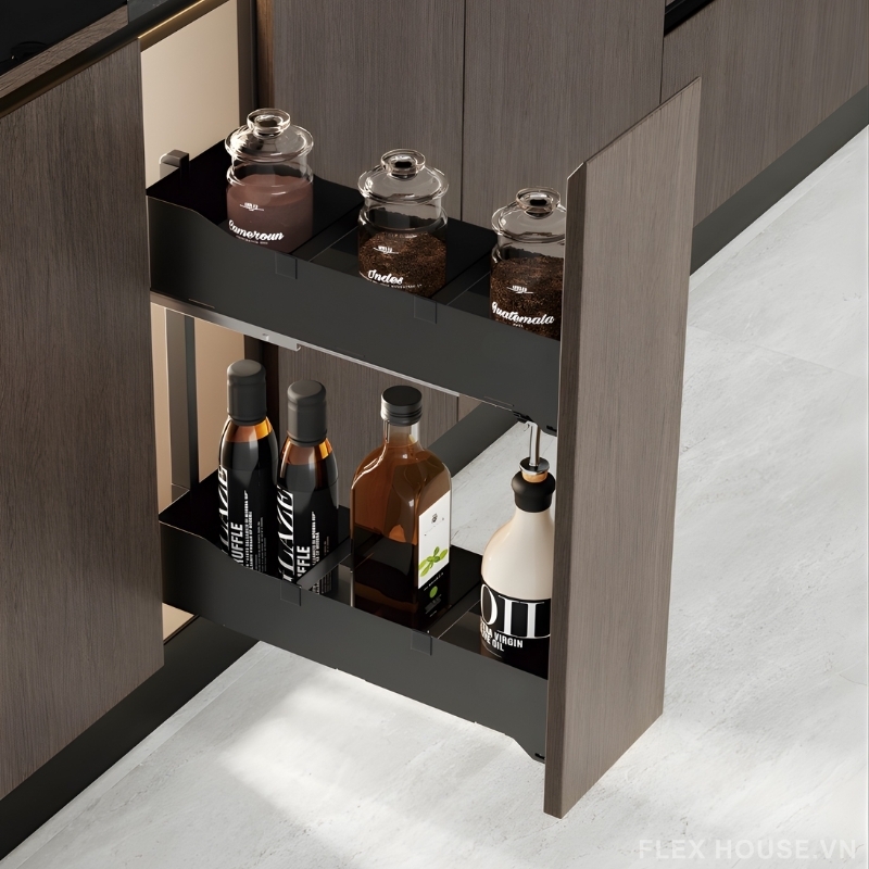 Giới thiệu về Kệ đựng chai lọ gia vị cánh rút cho tủ hẹp Taura 92715