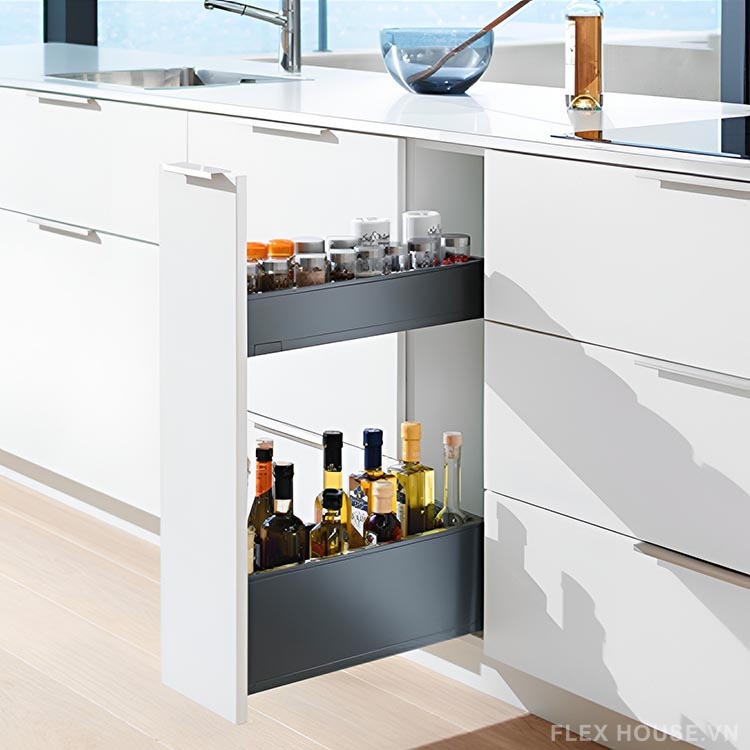 Kệ đựng gia vị hai tầng Blum SPACE TWIN LEGRABOX 770X50S0STW là giải pháp lưu trữ thông minh giúp tối ưu không gian tủ bếp hẹp một cách hiệu quả và tinh tế. Với thiết kế hai tầng độc lập, sản phẩm cho phép phân chia và sắp xếp gia vị khoa học, giúp người dùng dễ dàng quan sát và thao tác khi sử dụng.