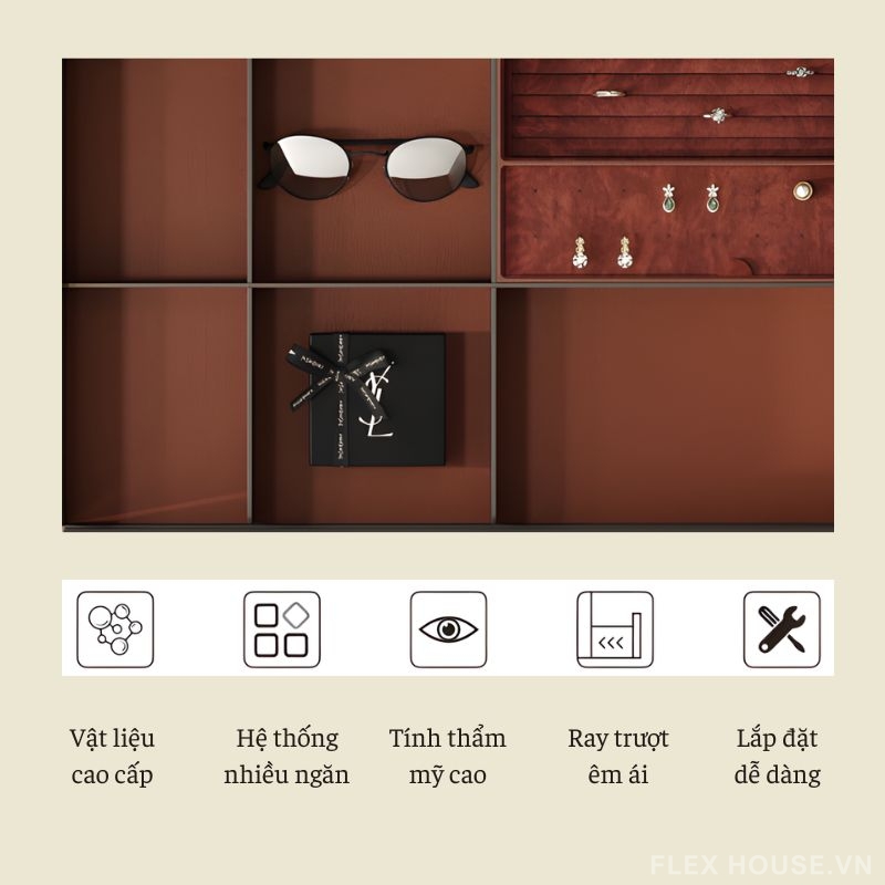 - Các ngăn chia khoa học dễ sắp xếp trang sức