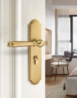 Khoá cửa phòng ngủ kiểu Pháp bằng đồng thau BR122-C là khóa cửa được chế tác bằng đồng thau nguyên chất mang phong cách tân cổ điển với màu sắc vàng gold làm chủ đạo, là sự kết hợp xuất sắc giữa máy móc hiện đại và thợ thủ công lành nghề. Phần tay nắm được thiết kế nằm ngang phù hợp với gia đình, lõi khoá có cấu tạo phức tạp, bảo mật cao. Đảm bảo tính riêng tư và an toàn cho gia chủ.
