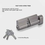 - Vật liệu hợp kim kẽm đúc nguyên khối, inox cho thân khoá, ruột khoá và vỏ khoá