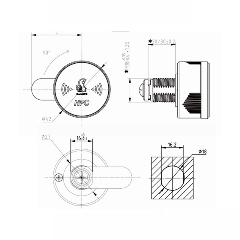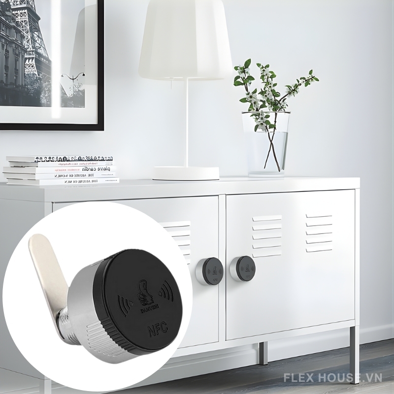 Khóa cửa thông minh NFC cho tủ ngăn kéo DMZ-1888NFC là mẫu khóa tủ tròn cao cấp sử dụng công nghệ NFC không cần nguồn, mở khóa trực tiếp bằng điện thoại hỗ trợ NFC. Khóa không dùng pin, không cần sạc – hạn chế bảo trì và hoàn toàn không lo hết pin khi sử dụng. Thiết kế cao cấp Ø42mm bằng hợp kim kẽm mạ sáng, phù hợp cho tủ gỗ, tủ hồ sơ văn phòng, tủ sắt, tủ locker, tủ ngăn kéo gia đình – khách sạn – phòng gym.