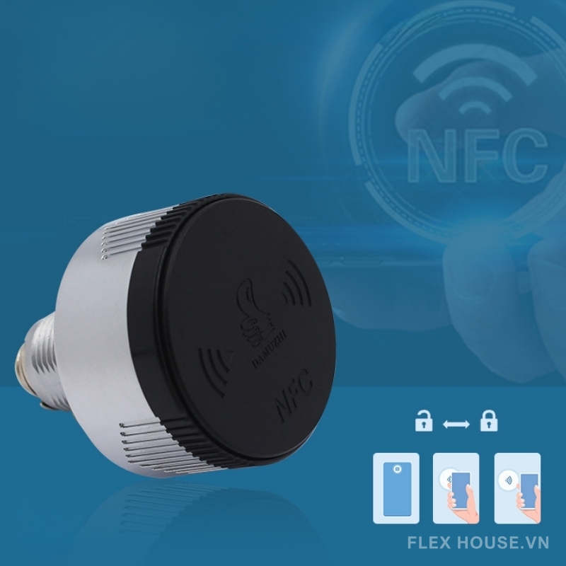 - Thiết kế núm tròn Ø42mm sang trọng, mặt trước khắc biểu tượng NFC hiện đại.