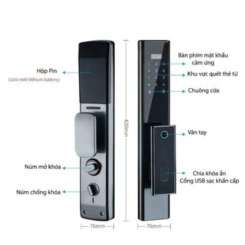 - Phương pháp mở khóa: Smartphone, vân tay, mật khẩu, thẻ từ, chìa khóa cơ