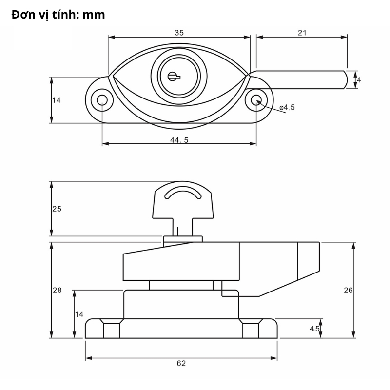 Khóa cửa và cửa sổ hình lưỡi liềm KD9714 là dòng khóa cơ học phổ biến cho cửa sổ mở quay, cửa trượt và cửa nhôm, giúp tăng độ an toàn và hạn chế mở cửa ngoài ý muốn. Thiết kế dạng lưỡi liềm đặc trưng cho thao tác khóa chắc chắn, dễ sử dụng và phù hợp nhiều hệ cửa khác nhau.