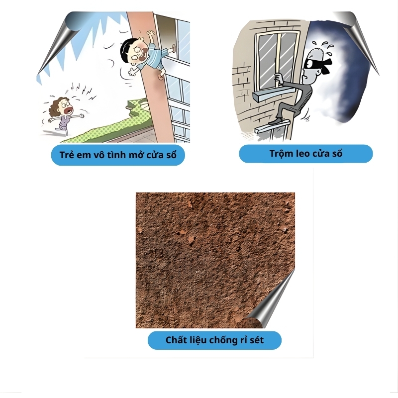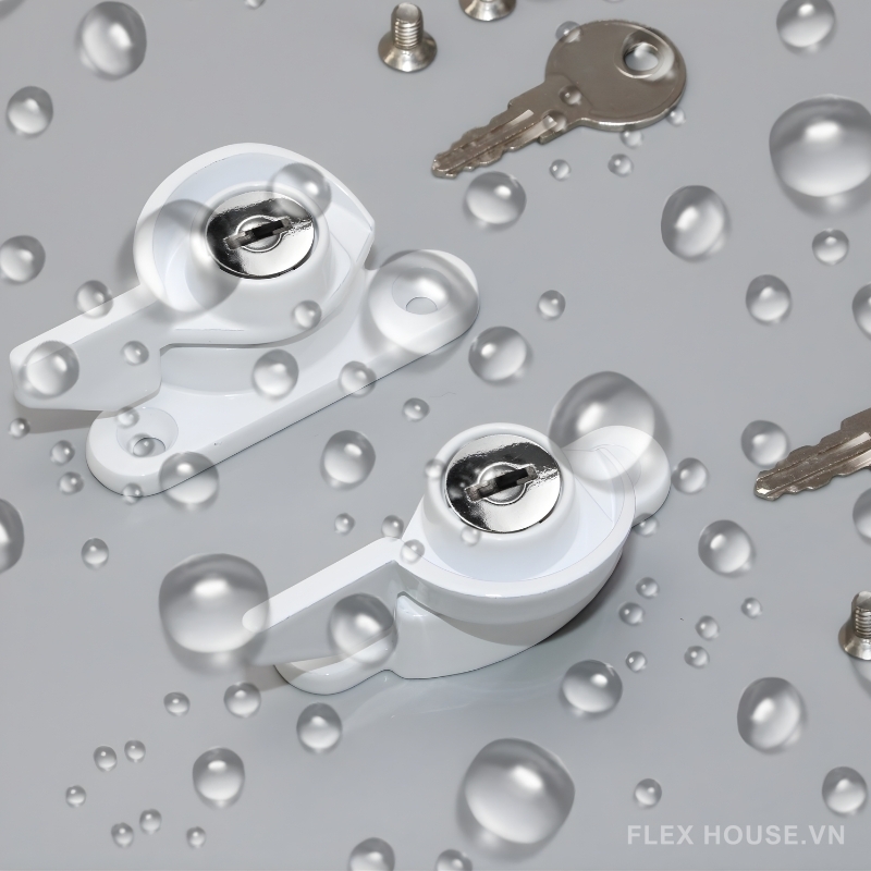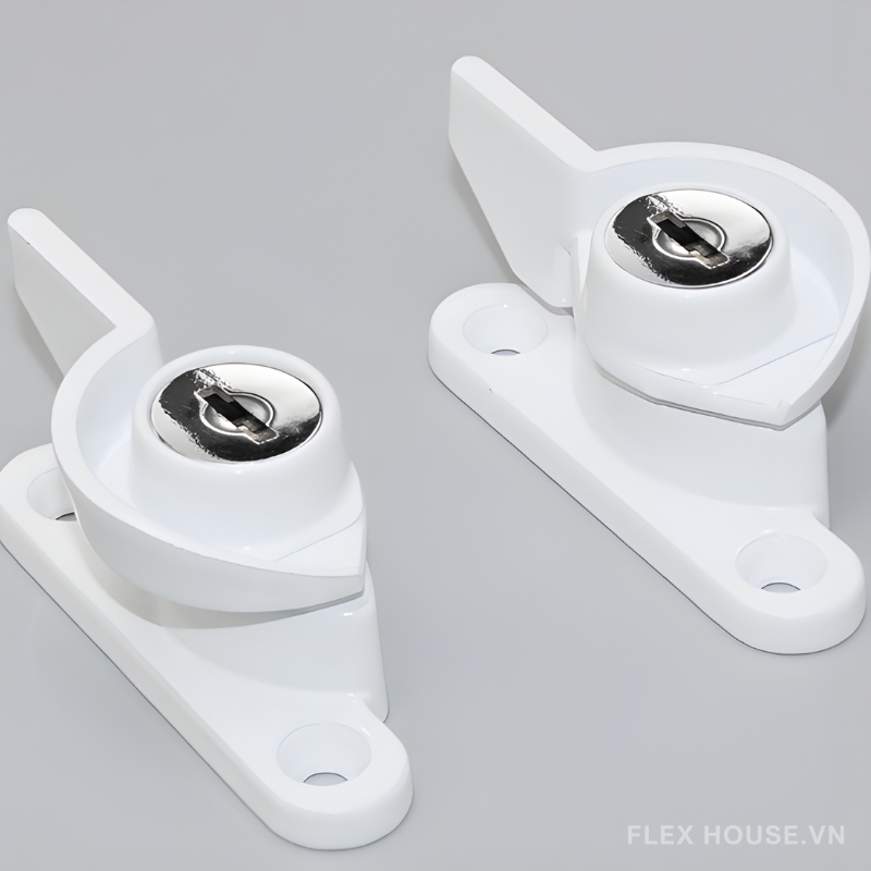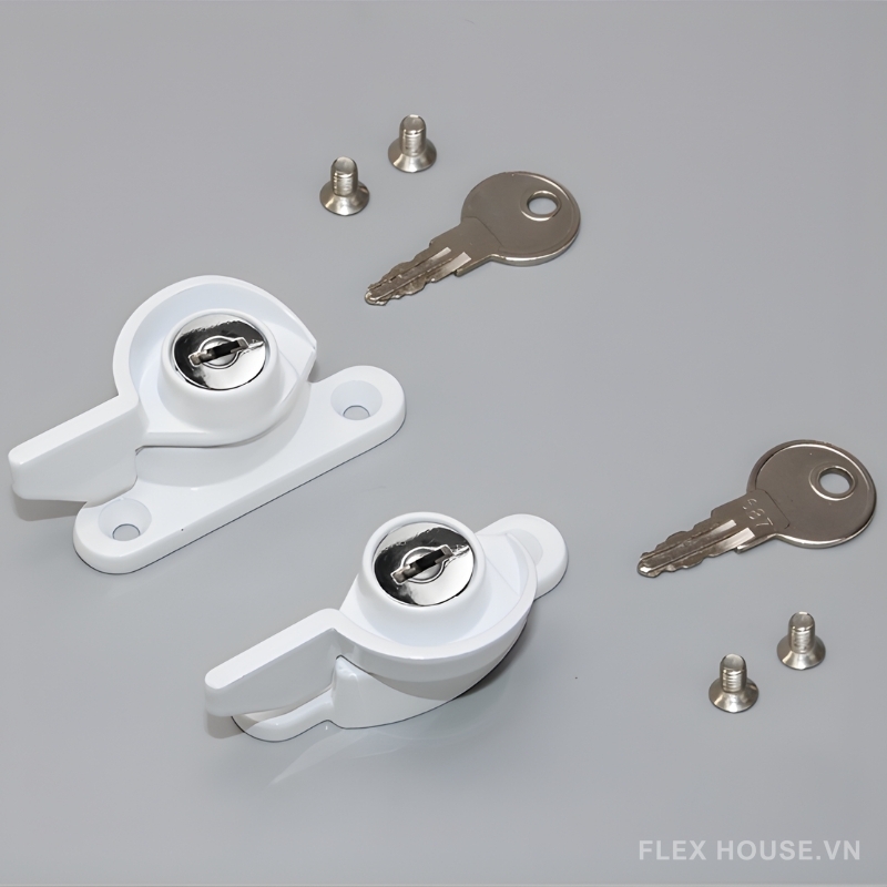 Khóa cửa được gia công từ hợp kim bền chắc, kết hợp ổ khóa cơ có chìa, mang lại sự yên tâm khi sử dụng cho gia đình, đặc biệt phù hợp với nhà có trẻ nhỏ hoặc khu vực cần kiểm soát an ninh cửa sổ.