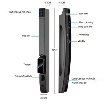 - Mở khóa tiêu chuẩn: Vân tay/Thẻ/Mật mã/Chìa khóa