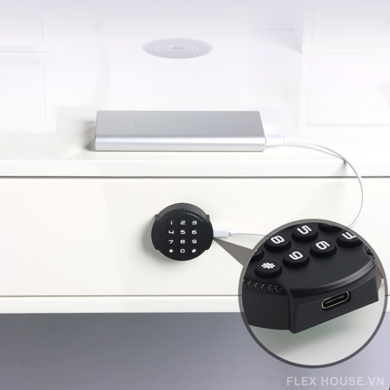- Hỗ trợ nguồn điện khẩn cấp Type-C: Khi hết pin, chỉ cần dùng pin sạc dự phòng hoặc cáp điện thoại để cấp nguồn tạm thời, tránh bị kẹt khóa.