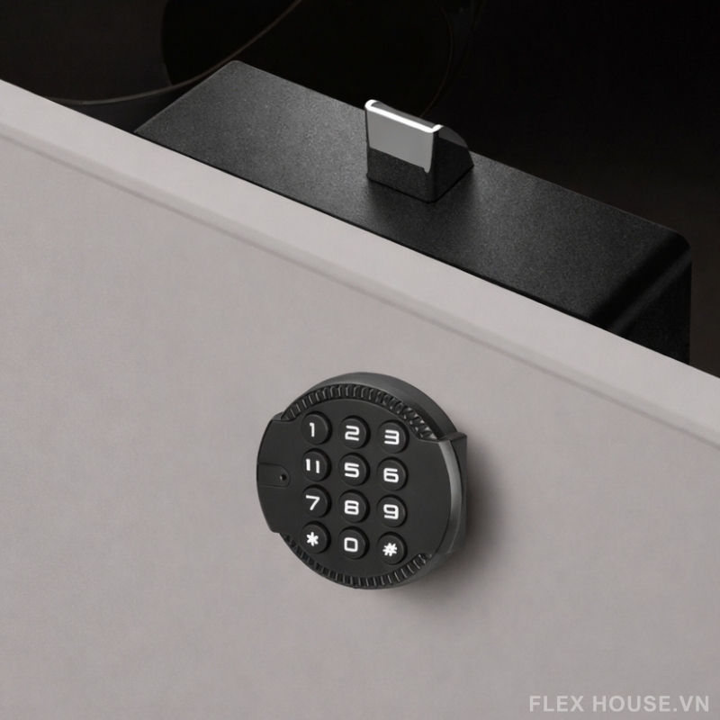 - Mở khóa bằng mật mã điện tử 12 chữ số: Cho phép thiết lập mật khẩu linh hoạt, tăng độ bảo mật và dễ sử dụng cho nhiều đối tượng.
