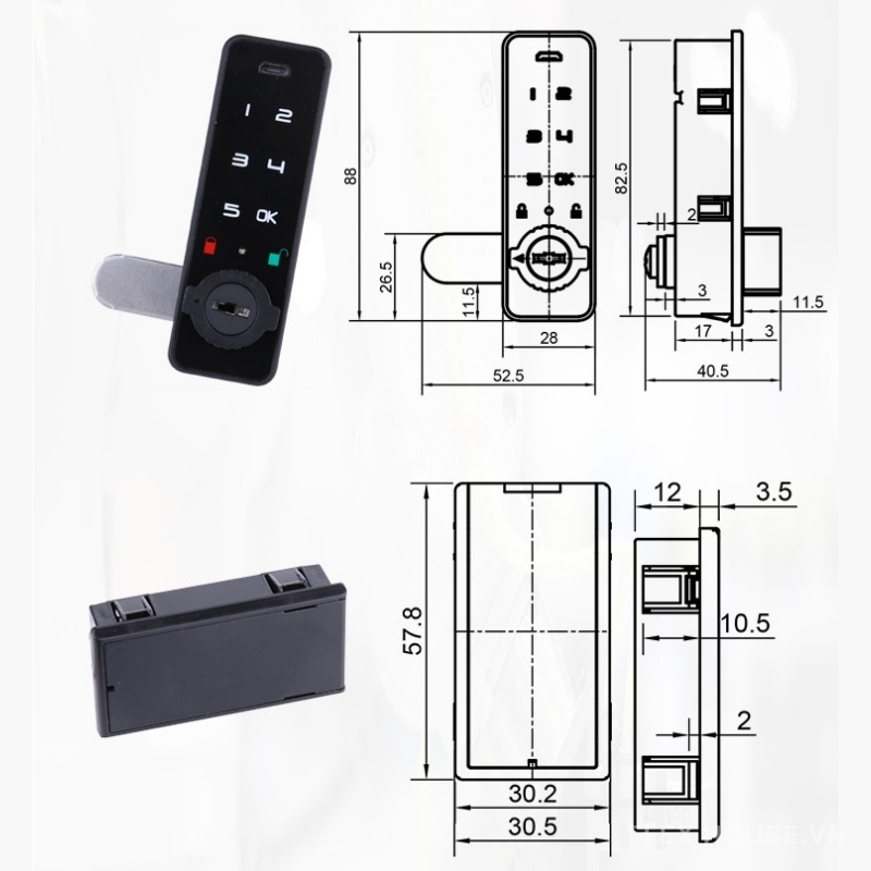 Khóa hỗ trợ mở khóa bằng mật mã số kết hợp USB KEY khẩn cấp, đảm bảo luôn chủ động trong mọi tình huống, kể cả khi quên mật khẩu. Cấu trúc lắp đặt liền khối, tương thích nhiều dạng ngăn kéo (kể cả ngăn kéo 3 ray), giúp việc lắp đặt nhanh chóng, dễ dàng và ổn định lâu dài.