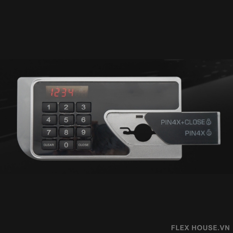 - Mở khóa bằng mã số điện tử: Trang bị bàn phím cơ học 12 phím, thao tác rõ ràng, dễ sử dụng; hỗ trợ mật khẩu người dùng 4–6 chữ số và mật khẩu quản lý 6 chữ số.