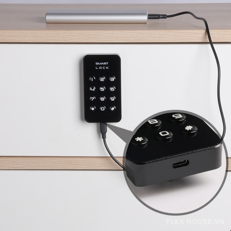 - Cấp nguồn khẩn cấp Type-C: Khi hết pin, chỉ cần dùng pin sạc hoặc cáp sạc điện thoại để cấp điện tạm thời – không lo bị khóa.